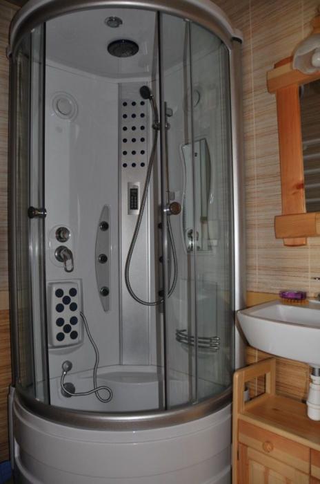 A szalonban műholdas TV + DVD, konyhasarok (mikrohullámú sütő, 2 főzőzónás indukciós főzőlap, edények, tányérok, evőeszközök) fürdőszoba (hidromasszázsos zuhany), vezeték nélküli Internet vehető igénybe.