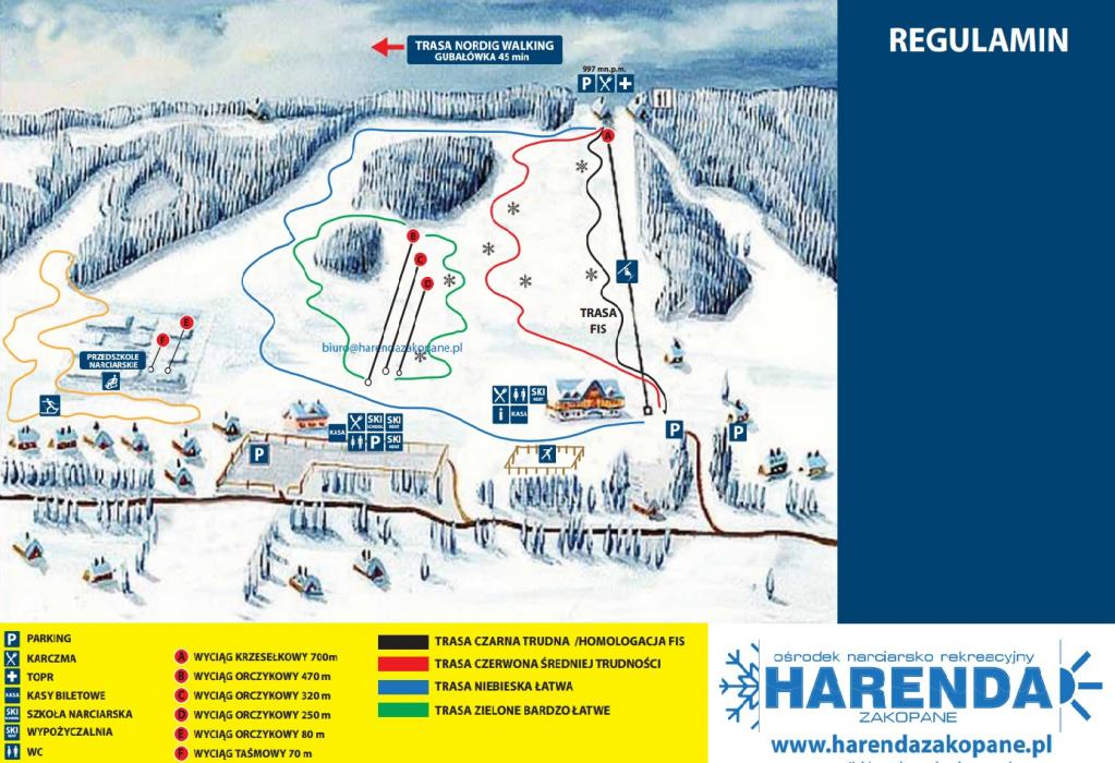 Zakopane északi részén, a Harenda városrészben várja a síelés kedvelőit a Harenda Síközpont minden igényt kielégítő szolgáltatásaival: hóágyúzott, különböző nehézségű sípályákkal, nagy kapacitású sífelvonókkal, snowboard parkkal, sífutó pályával, regionális étteremmel és jégpályával.