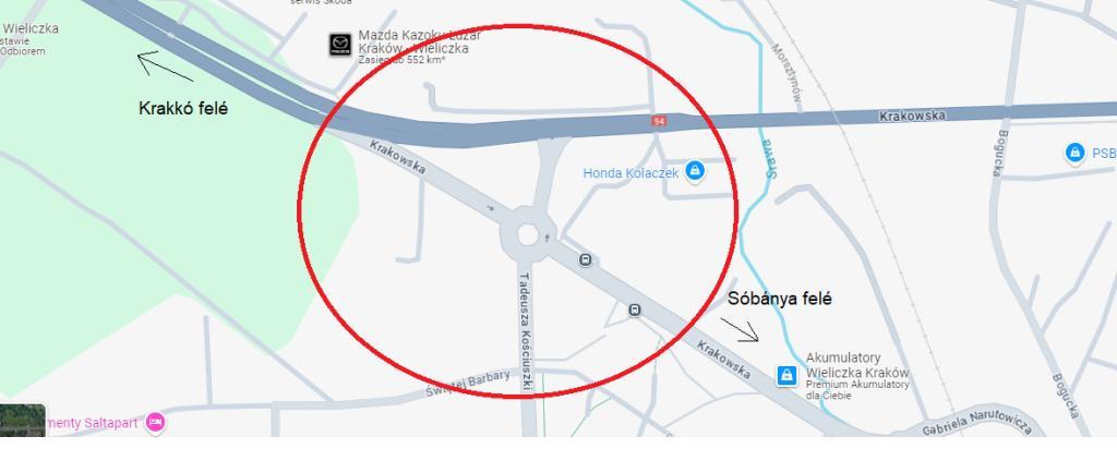 Az építkezés célja, hogy a jelenlegi lámpás kereszteződés okozta dugókat csökkentse és biztonságosabbá tegye a 94-es útról való lehajtást a Krakowska utcára (ez visz a sóbányhoz) és a 94-es úra való visszahajtást akár Krakkó (A4-e autópálya felé), akár Tarnów irányában. A képen piros körrel jeleztük az adott kereszteződést.