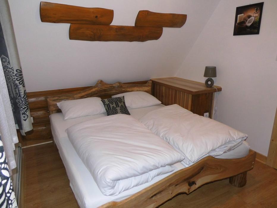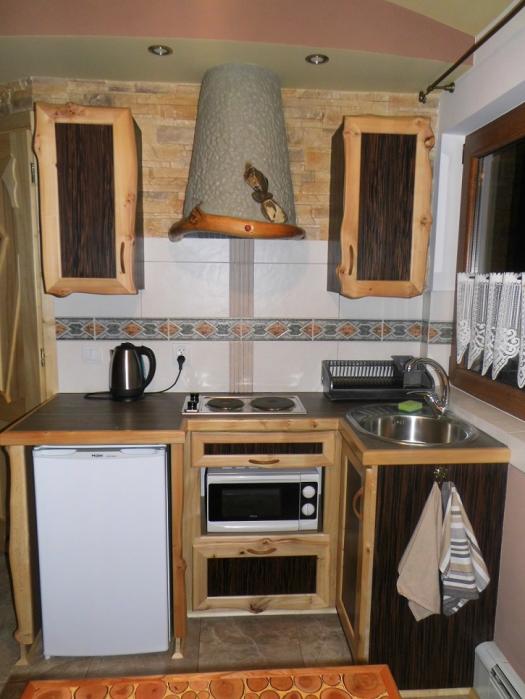 A házikó kétszintes max. 6 személy számára biztosít kényelmes szállást. Az emeleten két külön kétszemélyes hálószoba: egyikben franciaágy, a másikban két egyszemélyes, de összetolható ágy van. A földszinten jól felszerelt konyha (főzőlap, hűtő, vízforraló, mikrohullámú sütő és edények), fürdőszoba, és egy kinyitható kanapés szalon található. A házikó kialakítása és berendezése regionális stílusban, kézzel készül, egyedi tervek alapján, természetesen fából. A házikó saját kerttel, kiülési lehetőséggel és saját parkolóval rendelkezi.