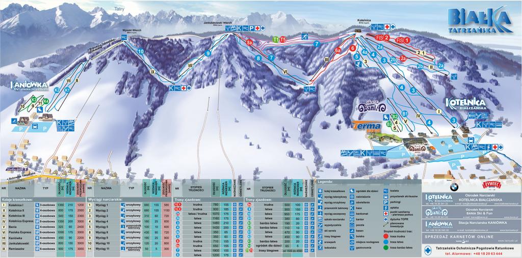 A sípályák úgy lettek kialakítva, hogy különböző tudással rendelkező síelők és snowbordosok is megtalálják a kedvükre való terepet. A Kotelnica és a Bania sípályák egybefüggőek, így mindekettő besíelhető.