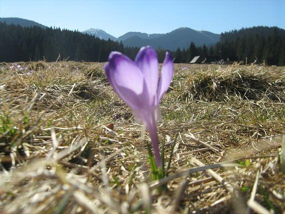 - Felső képsor, közép: Krókusz a Siwa Polanan (Szürke-rét), háttérben a Nyugati-Tátra.